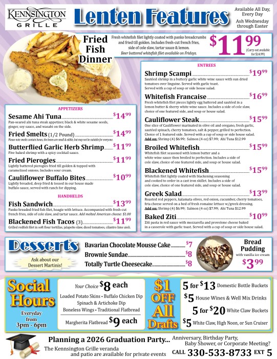 Lenten Features Menu
