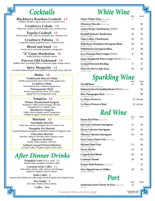 Kennsington Grille Menu